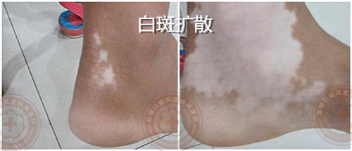 1、进展期:白斑增多,原有白斑逐渐向正常皮肤移行、扩大,境界模糊;